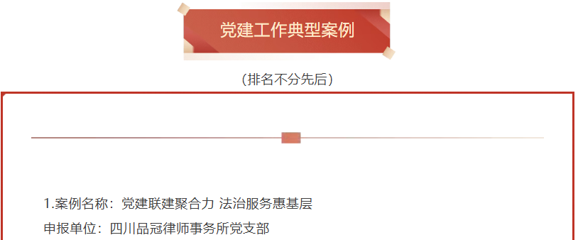 喜报!四川品冠律师事务所案例入选四川省律师行业党建工作典型案例